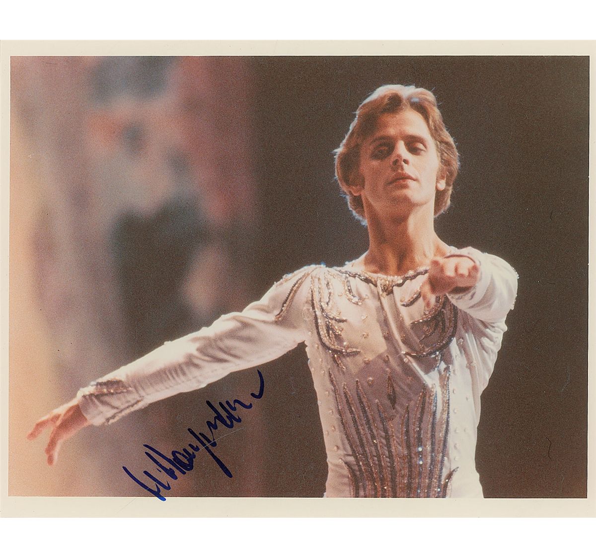 Color glossy 10 x 8 photo of Baryshnikov performing, signed in blue felt tip. In very fine condition.