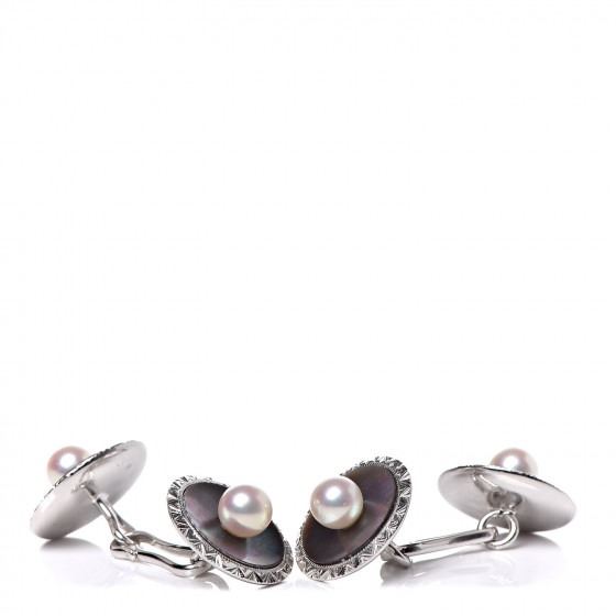Style: MIKIMOTO 18K White Gold Akoya Pearl Black Mother of Pearl 5-5.5mm Cufflinks