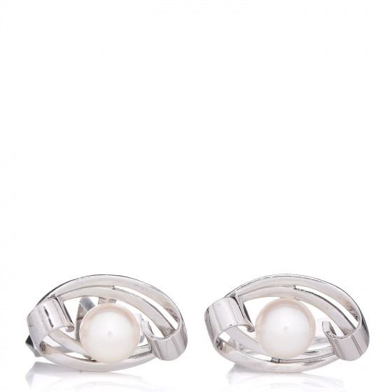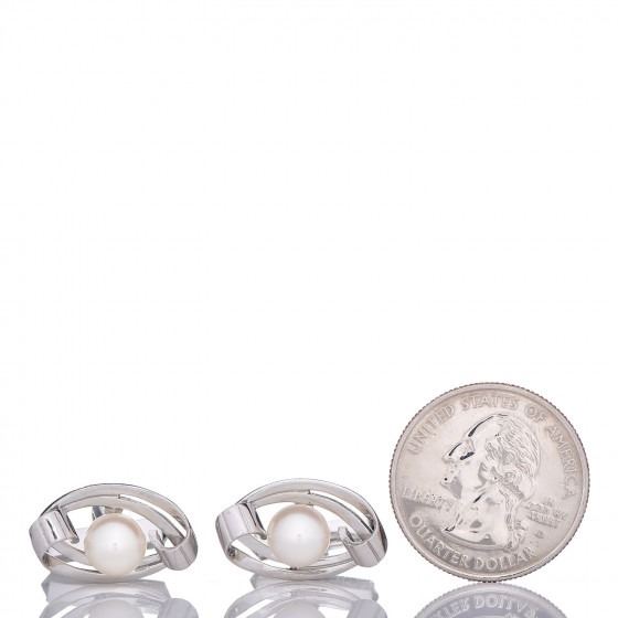 Cufflinks are crafted of 14 karat white gold and feature a 7.5mm Akoya pearl accent at the center.