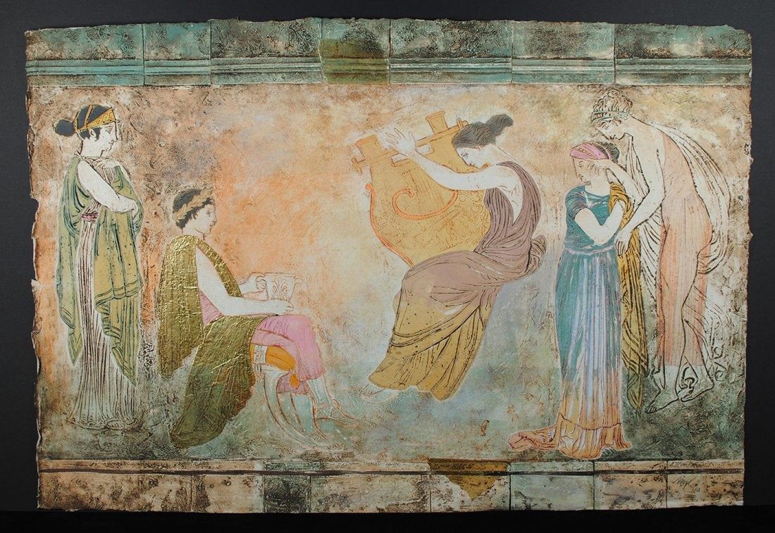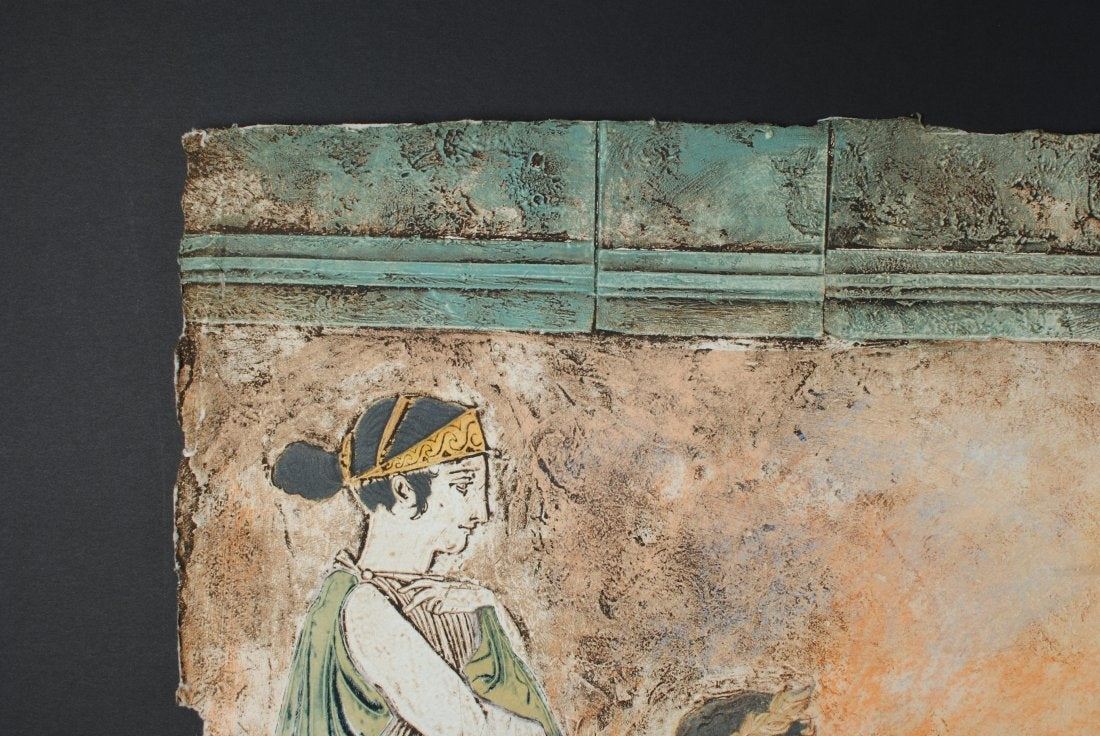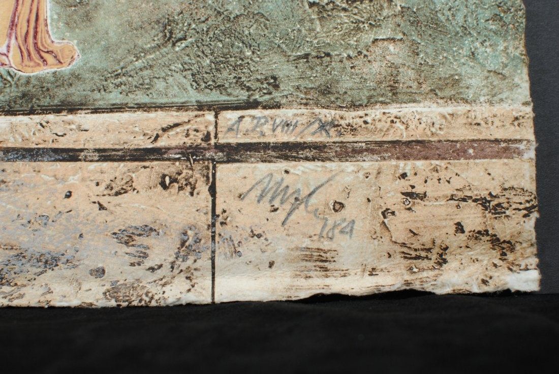 Mikulas Kravjansky intaglio limited edition serigraph on hand made paper, signed and dated '84, A.P. VII/X. This piece is in great condition, but has a tear on the left side. 31 1/2" x 46 1/4"
