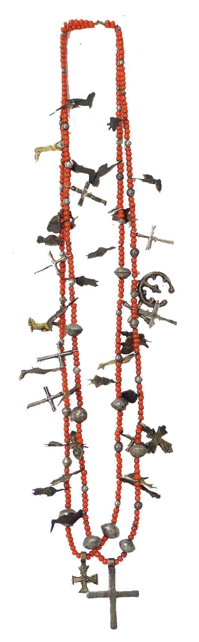 Mid 20th Century, Antique 2-strand silver milagro necklace - Central Mexico. 30" dia.