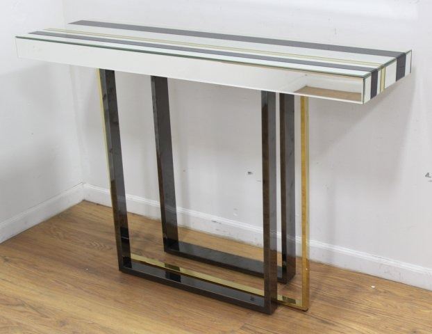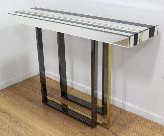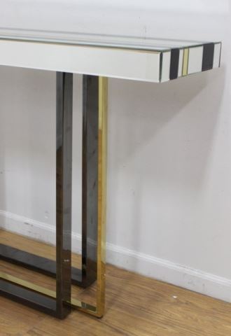 Contemporary. Black, gold, and clear mirrored. Approx. 35 1/2" H x 53 1/4" W x 15 3/4" D. (5290)