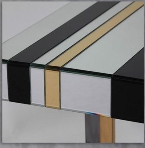 Contemporary. Black, gold, and clear. Approx. 30" H x 79" W x 39" D.