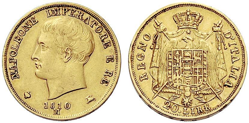 Milano. Napoleone I re d’Italia, 1805-1814. Da 20 lire 1810. Pagani 20. BB