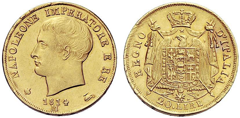 Milano. Napoleone I re d’Italia, 1805-1814. Da 20 lire 1814. Pagani 24a. Minime striature di conio al rv. Spl