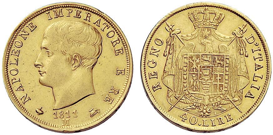 Milano. Napoleone I re d’Italia, 1805-1814. Da 40 lire 1811. Pagani 14. BB