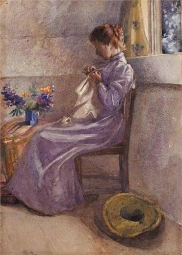 Mildred Anne Butler RWS (1858-1941) A WOMAN SEWIN