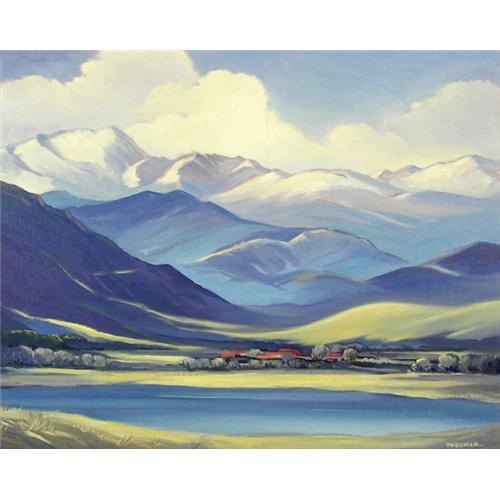 Mildred Pneuman (1899-1989) Oil on Board, "Across Baseline Lake", (Boulder, Colorado), 16" x 20", signed lower right, circa 1945