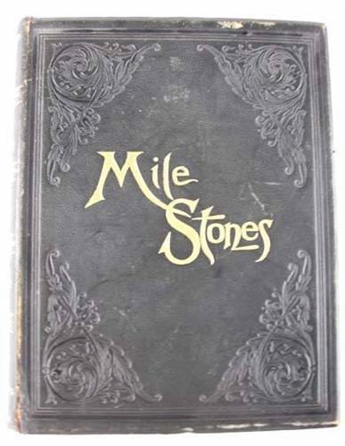 Mile-Stones of History, Literature, Travel, Mythology, Sculpture And Art, published by Elliott and Beezley, of Chicago and Philadelphia, 1887, Condition: Good - cover wear, 4" of front cover detached from the spine, no dust jacket