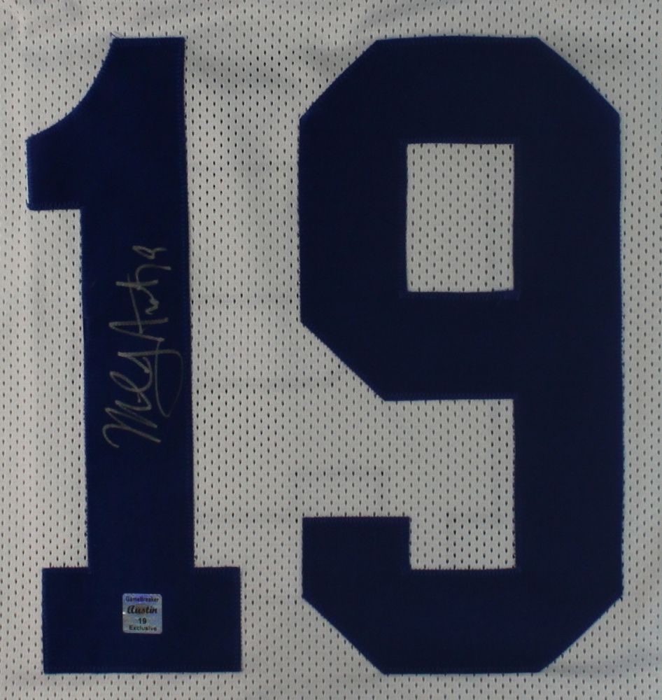On-field style jersey. Everything is sewn on, size XL. Hand-signed in silver paint pen by Miles Austin. Autograph includes a Miles Austin hologram for authenticity purposes.