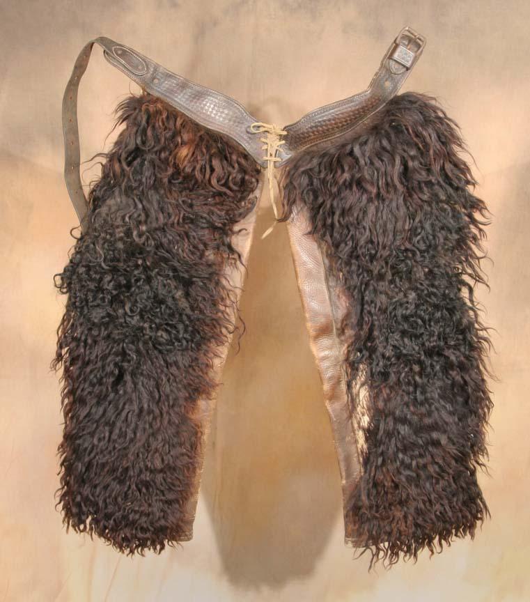 Miles City Woolly Chaps. 34" x 24". Early 20th century. (est $1,000-1,500). For condition reports please visit: www.auctioninsantafe.com/cr2011.pdf