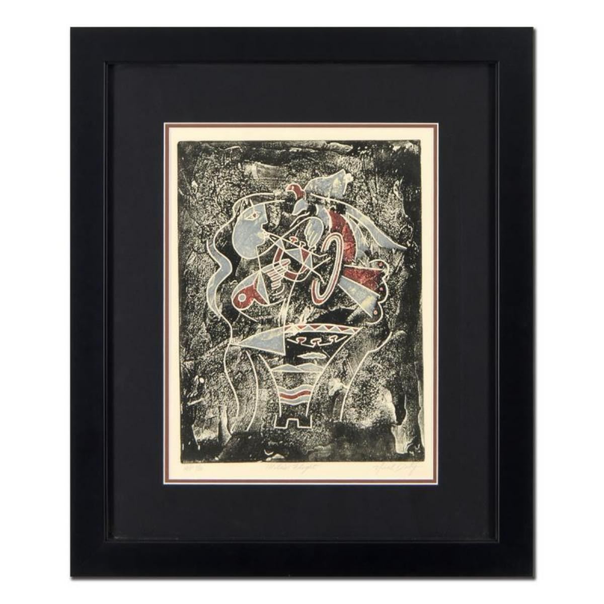 This is a unique variation mixed media linocut on paper, AP numbered 1/10 by Neal Doty (1941-2016), hand signed by the artist. This piece comes custom framed. Includes Certificate of Authenticity. This piece comes from Neal Doty's personal collection and was received directly from Doty's Estate. Measures approx. 22.5" x 27" (frame), 12" x 16" (image).
