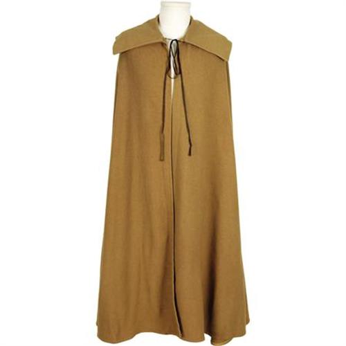 <B>Cloak Worn by Miles Mander in "The Man In the Iron Mask."</B></I> A tan wool cloak from costume designer William Bridgehorse featuring a wide fold-over collar, and worn by Miles Mander in the 1939 swashbuckling classic <I>The Man in the Iron Mask.</B></I> The Western Costume Co. tag along the inner collar lists Mander's name in black ink. In Excellent condition.<BR><BR><b>Shipping:</b> Clothing, Costumes & Jerseys (<a target="_blank" href="http://www.heritageauctions.com/common/shipping.php">view shipping information</a>)