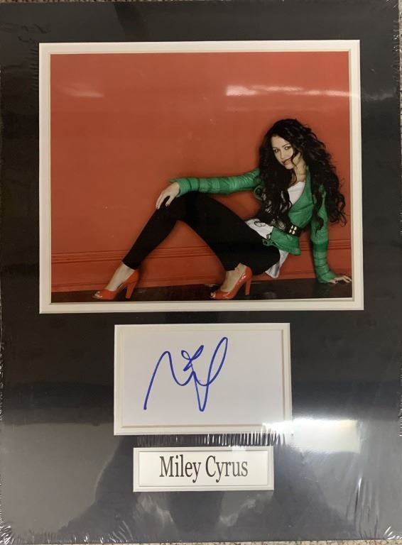 Miley Cyrus signature cut and photo collage in custom matte 11x14 in. Piece of the Past Authenticated. HL11141