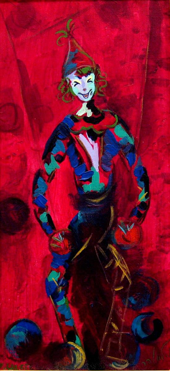 Milia Laufer, Israeli Art, B. 1923, Clown, Oil on canvas, 49x23cm, Signed., , , , ,
