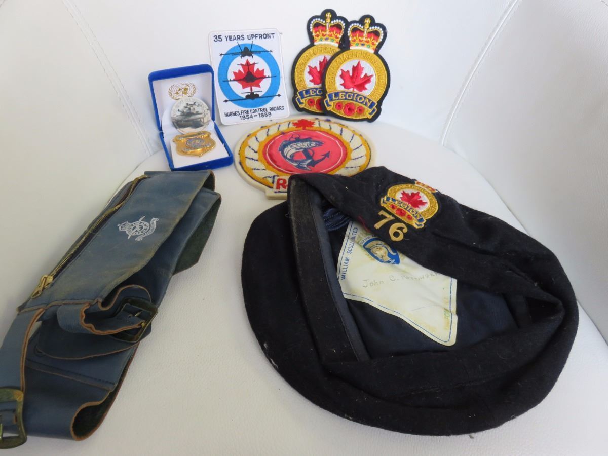UN Civilian Police badge, legion patches and hat, military belt + more.