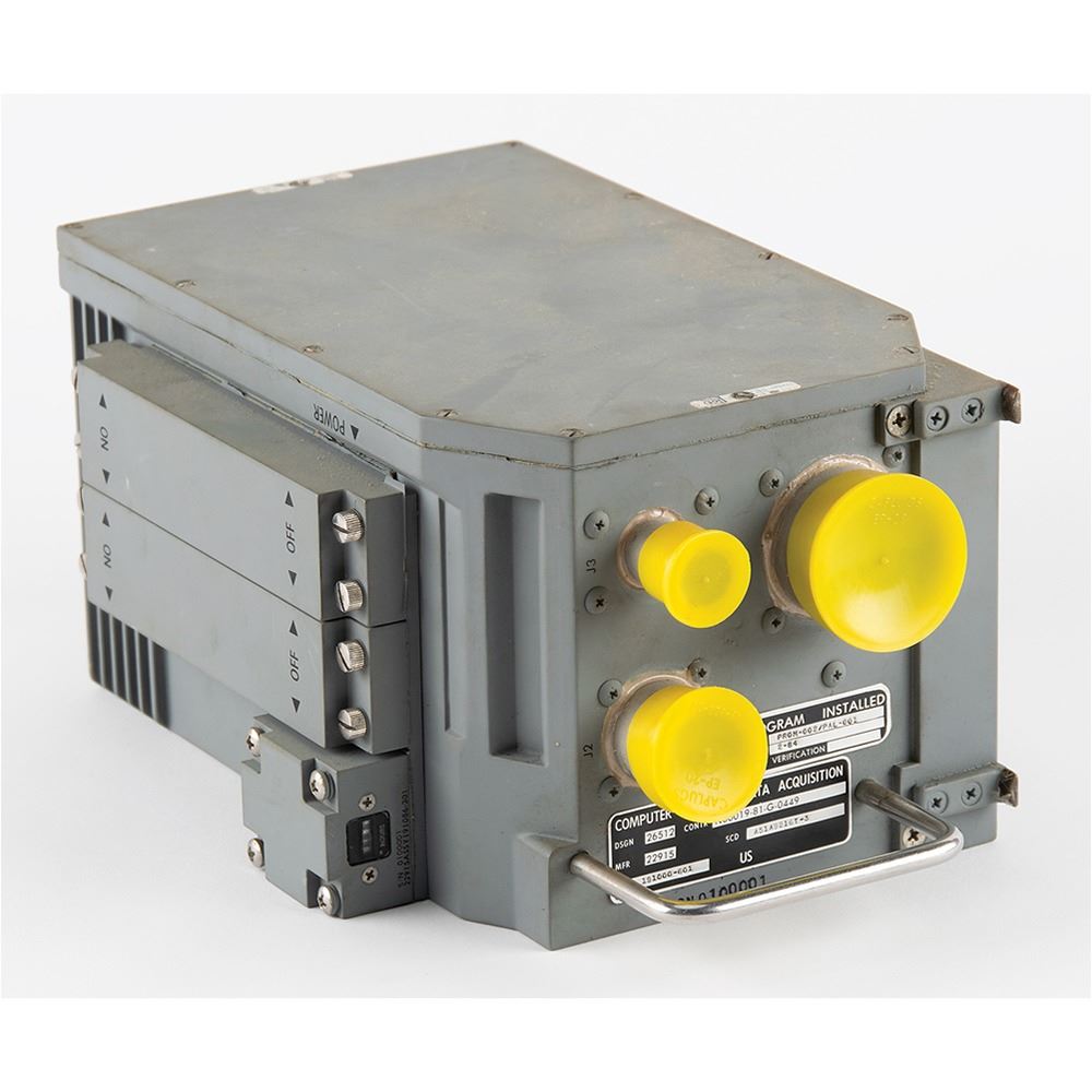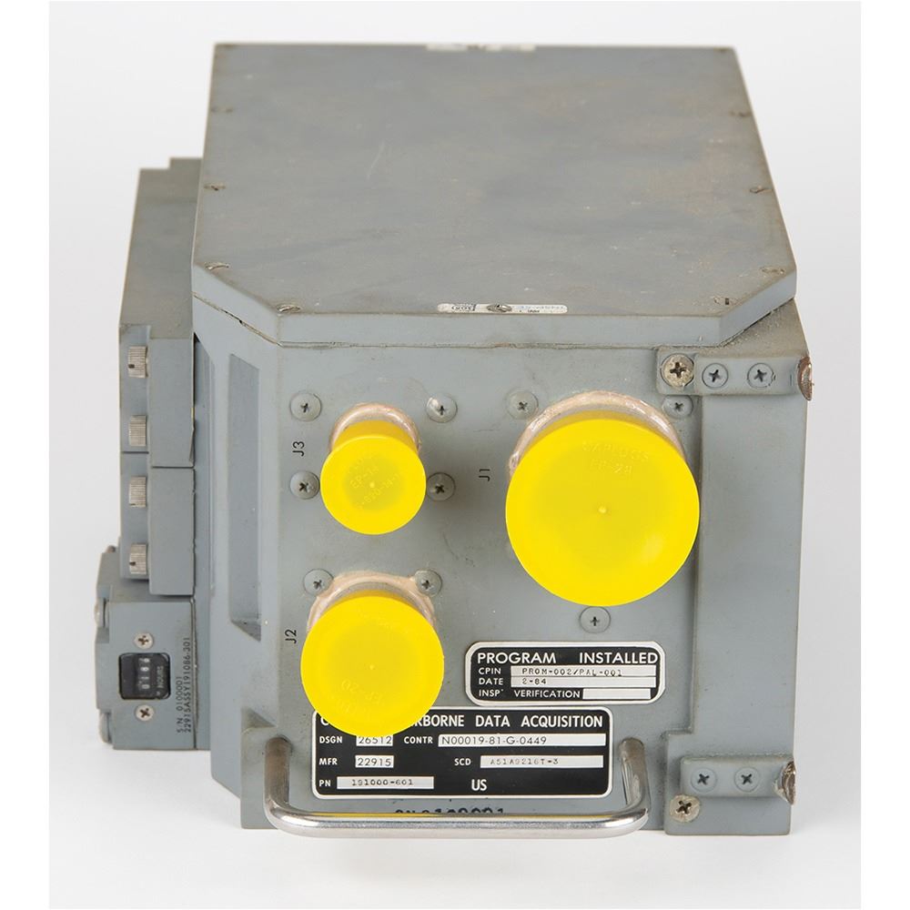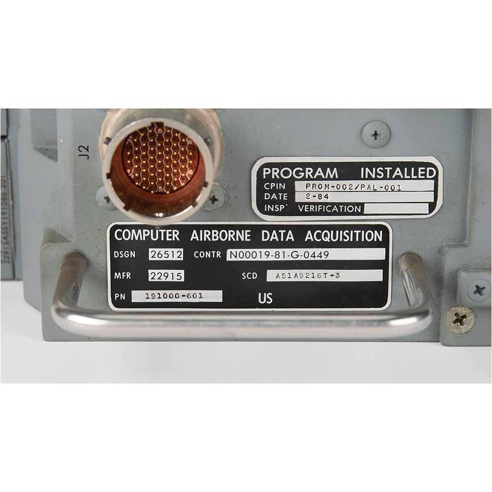 Export restricted (ITAR), sale only to US Citizens and Organizations. Airborne data acquisition computer with an undetermined military application, measuring approximately 7" x 11"Â x 5.5", with plate on the front reading: "Computer Airborne Data Acquisition, DSGN 26512, Contr N00019-81-G-0449, Mfr 22915, SCD A51A9216T-3, PN 191000-601." An additional "Program Installed" tag is dated February 1984.