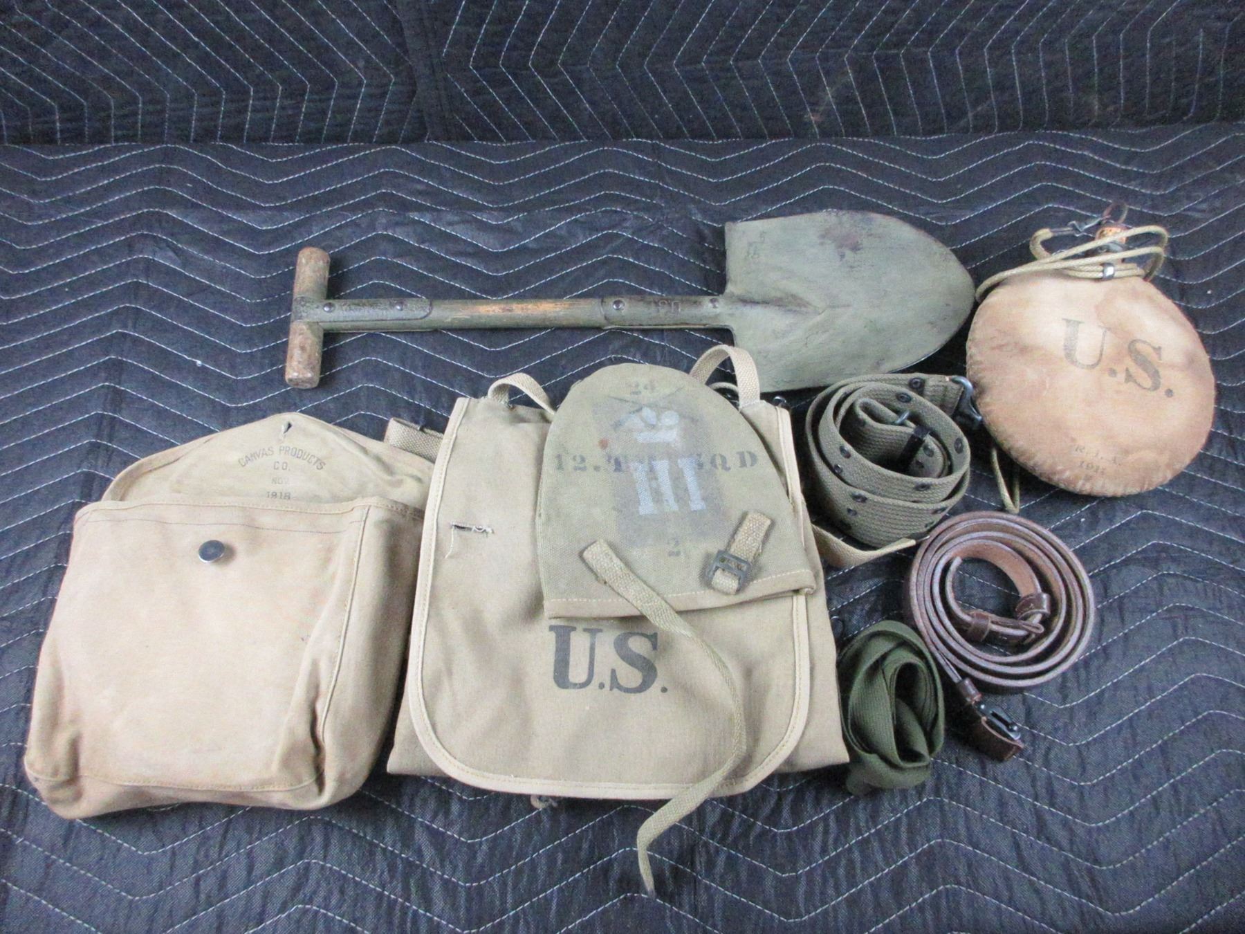 Military Backpack- Canteen- Shovel- Cooking Set- Web Belts