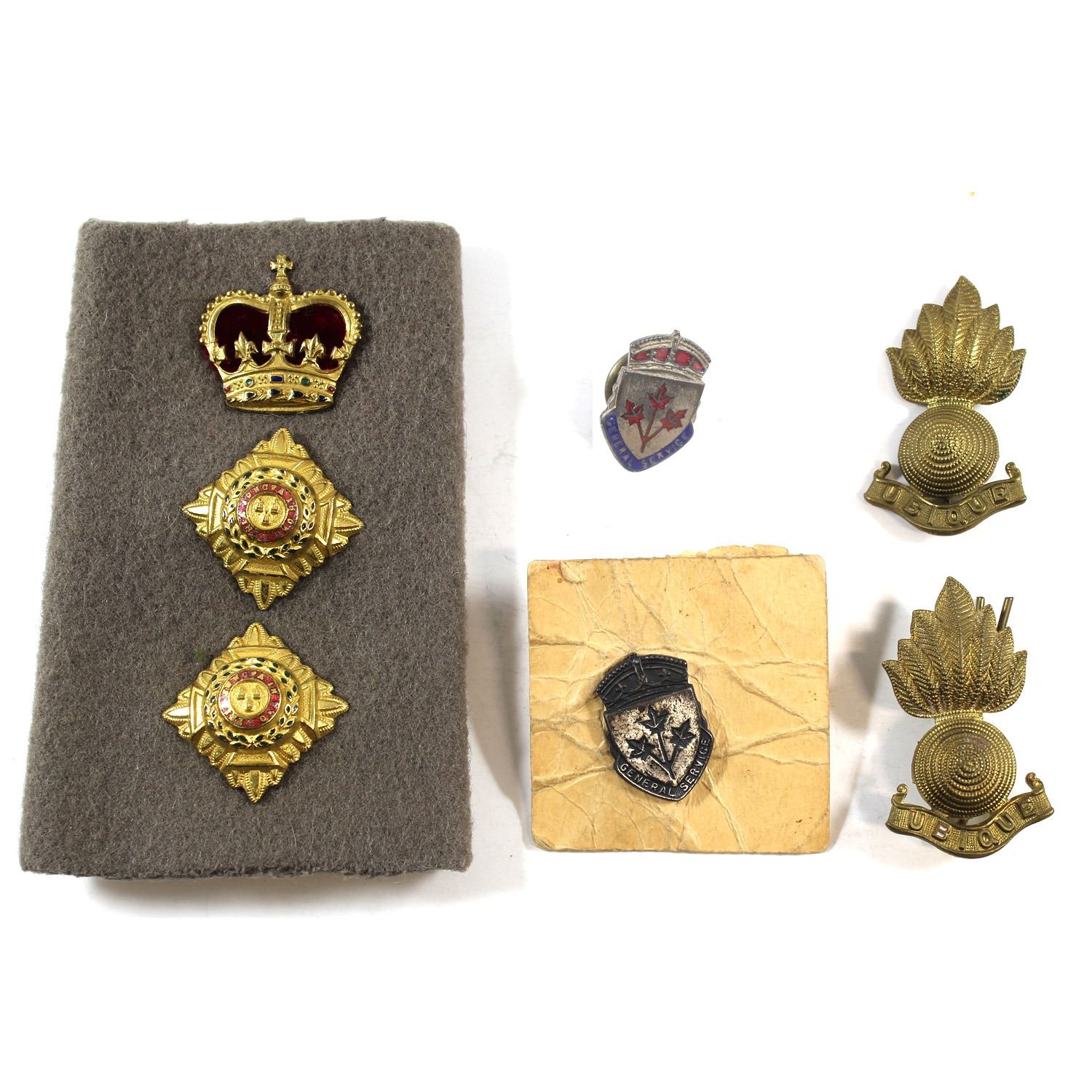 Military Buttons, General Service Pins and Royal Artillery Ubique Cap Badges. 7pcs