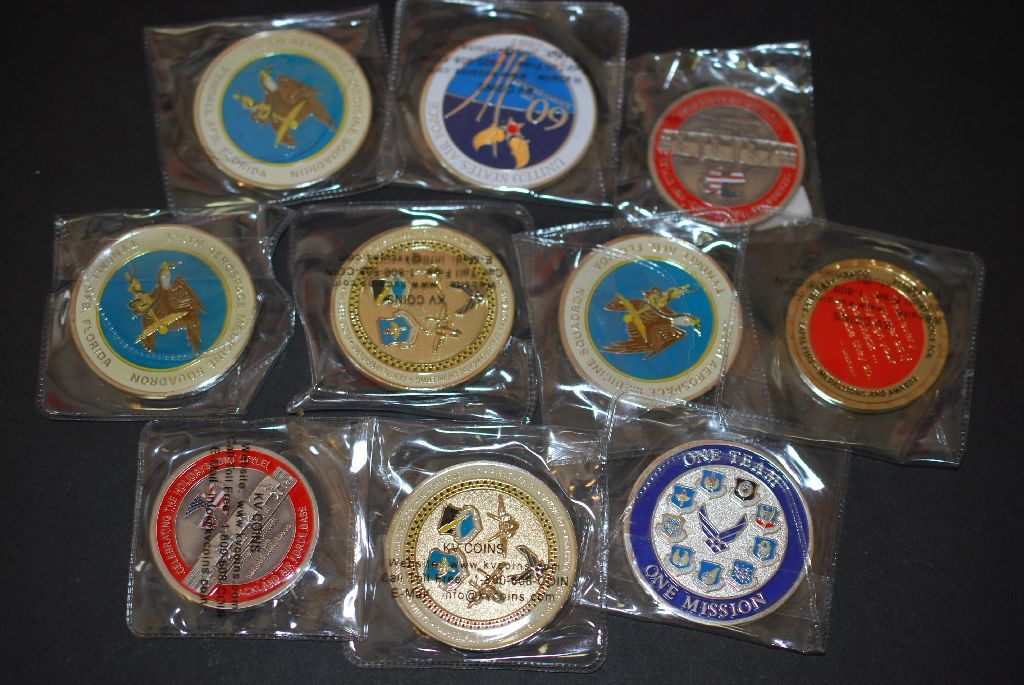 Military Challenge Coin; Various Dates, Bases, People, Etc.; Lot of 10; EST. $20-60