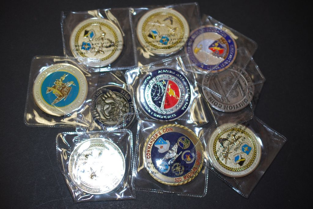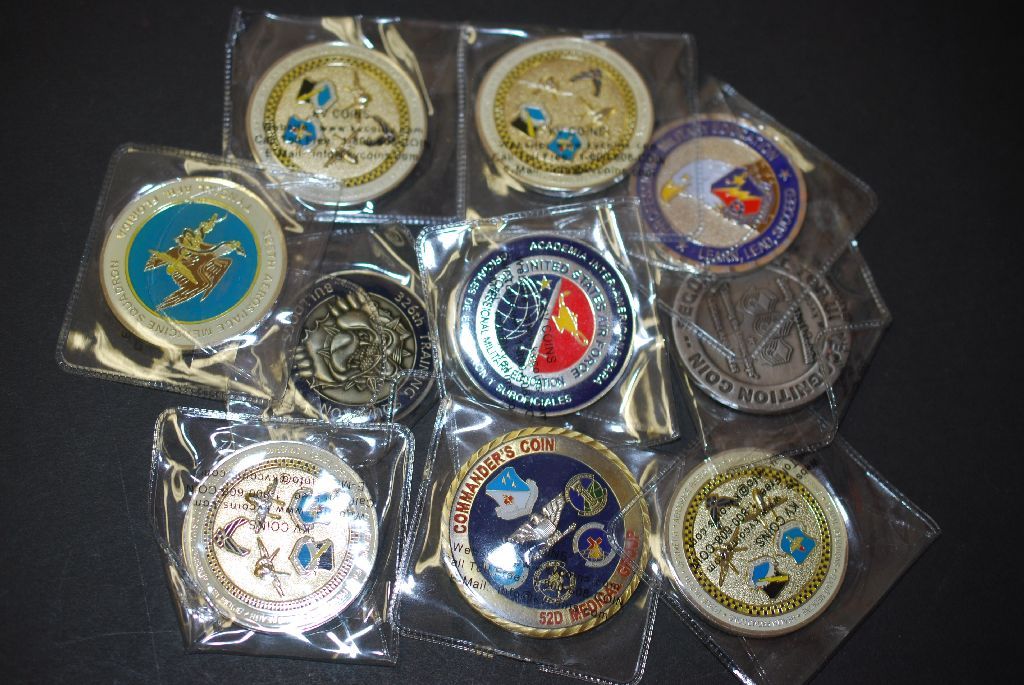 Military Challenge Coin; Various Dates, Bases, People, Etc.; Lot of 10; EST. $30-40