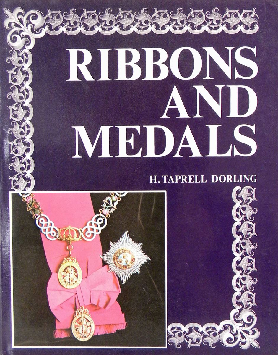 Dorling, H. Taprell, with L.F. Guill. RIBBONS AND MEDALS: THE WORLD’S MILITARY AND CIVIL AWARDS. Revised by Francis K. Mason. London: Seaby, 1974. 8vo, original brown cloth, gilt; jacket. viii, 359, (1) pages; illustrated throughout and on 24 pages of color plates depicting ribbons. Spotting to page edges, else near fine. One of the major works on the subject. Mulder and Purves 52-11.