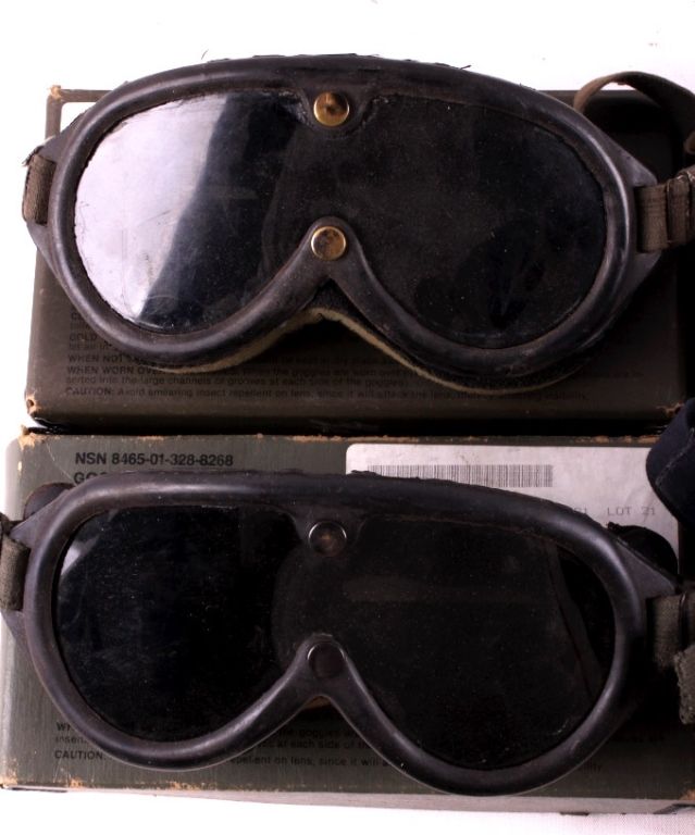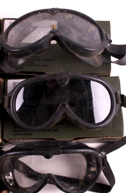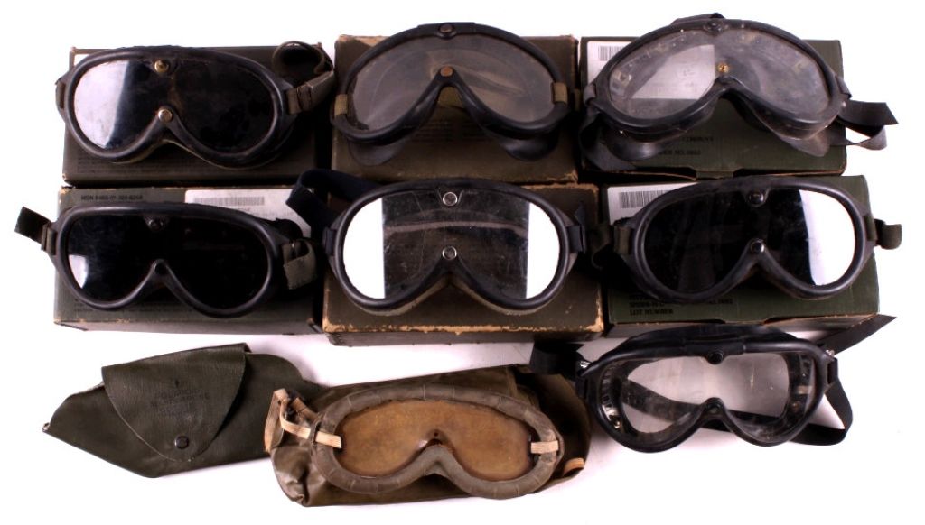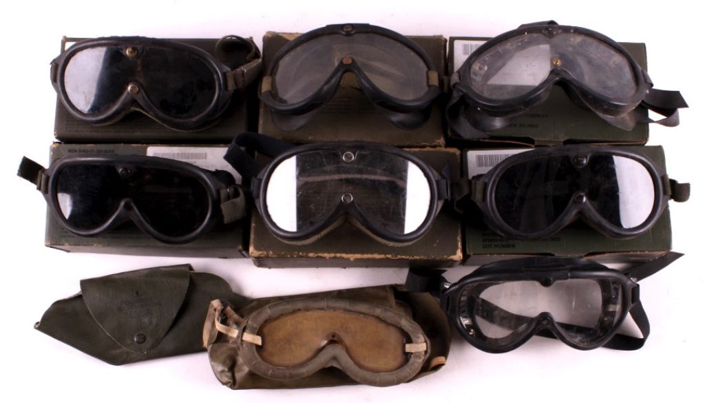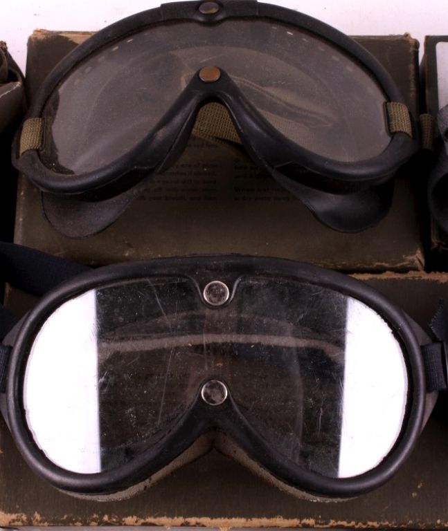 This is a collection of several pairs of  military goggles. There are various types of  goggles, some are in the original box. The  goggles date from WWII and later. They are in  good condition.