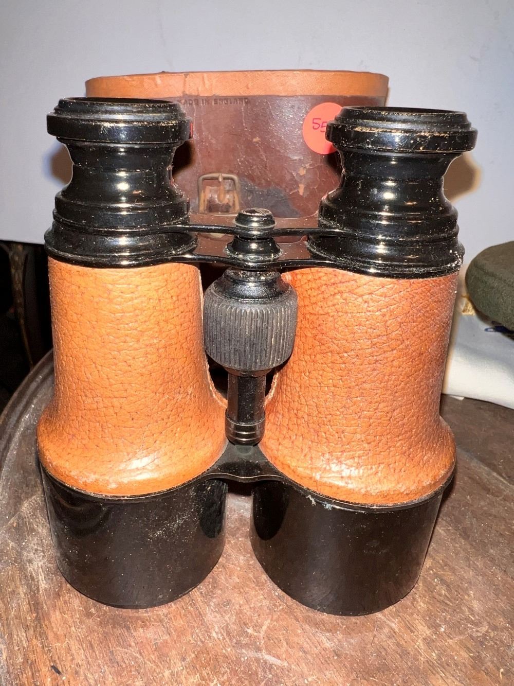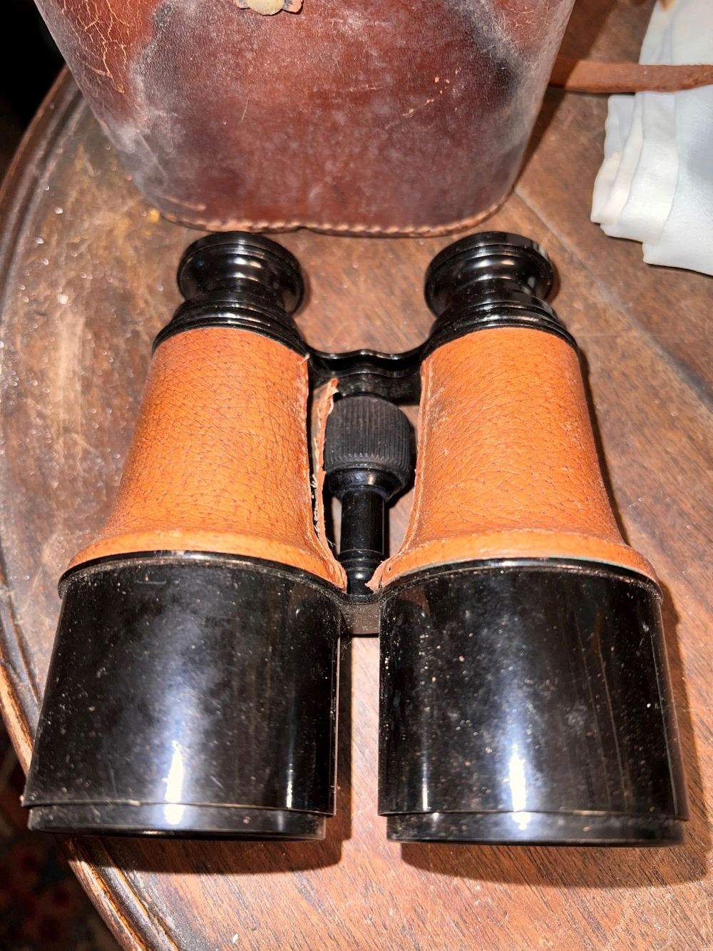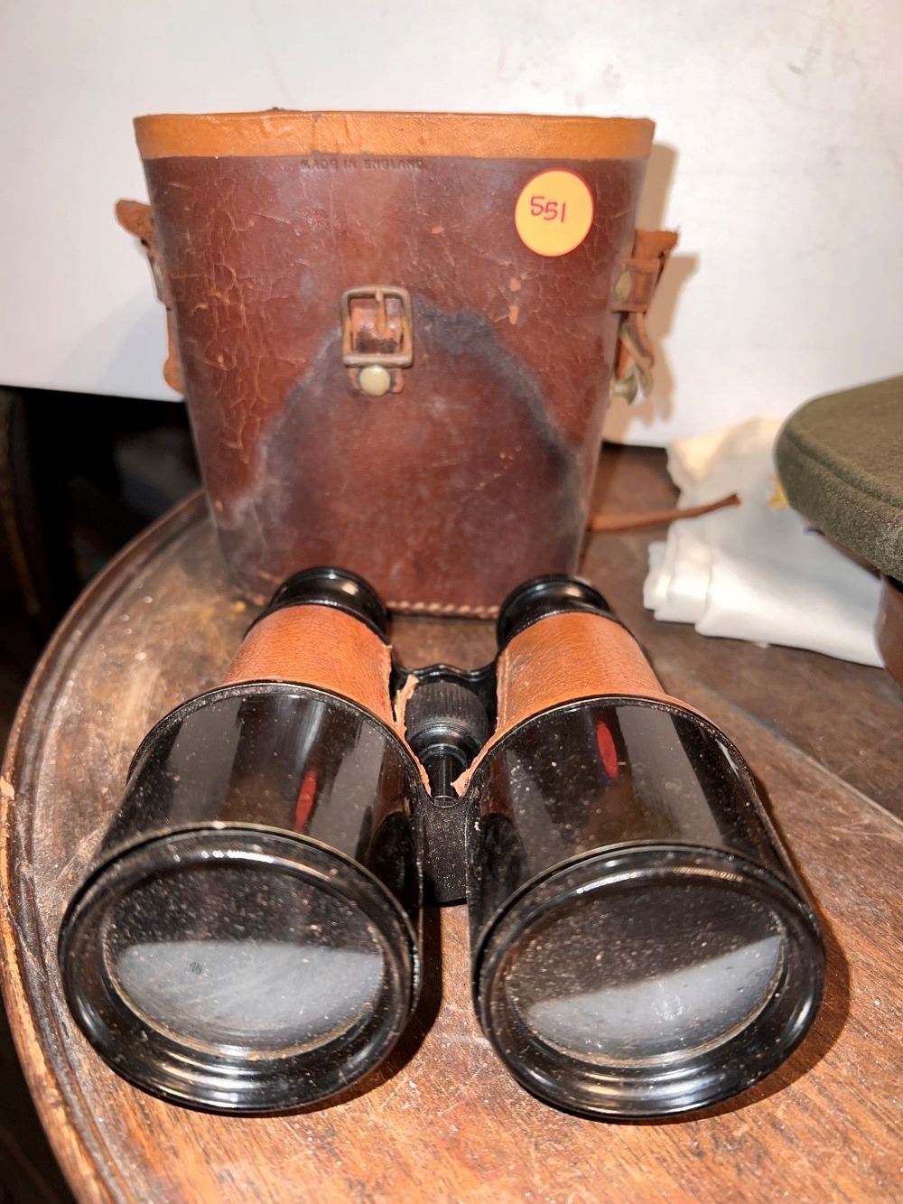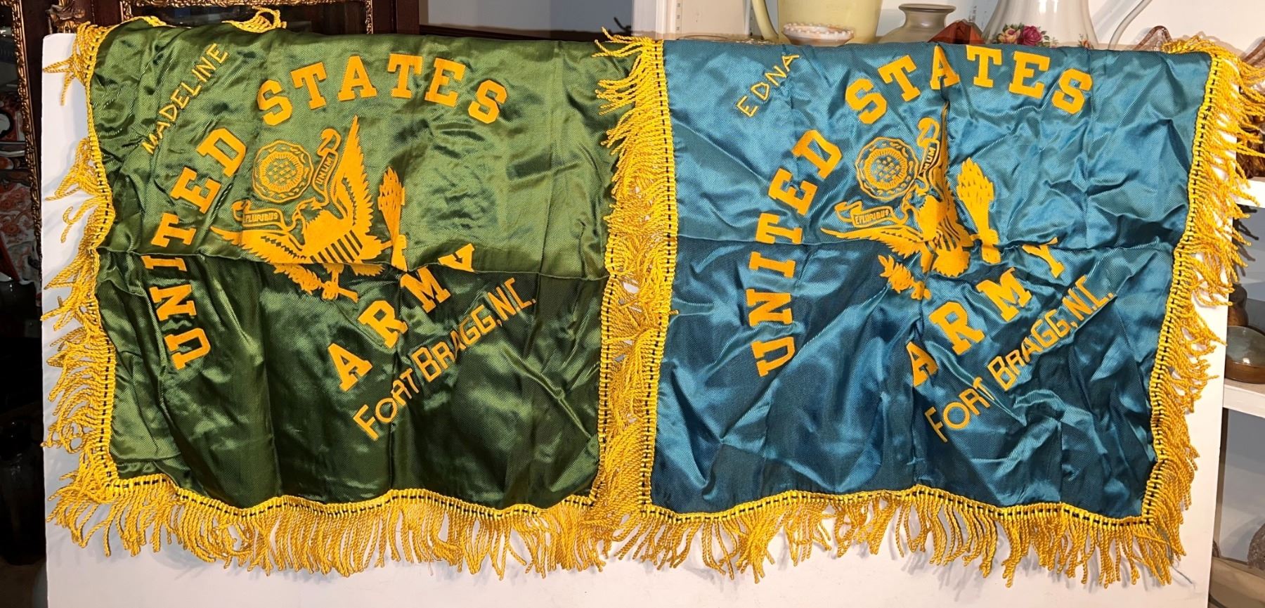 Army hat and patches and pin, 75th U.S Army Air Force Flying Tigers patch (Shark with missiles coming from it). Navy handkerchiefs, pillow covers and binoculars.