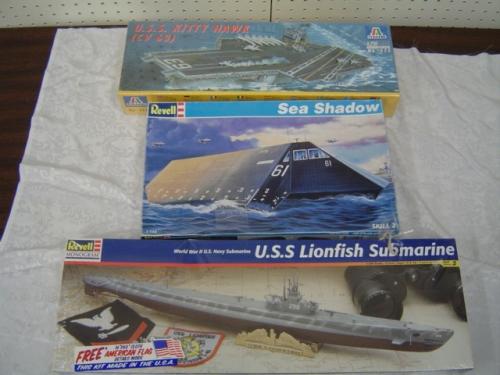 Italeri 522 1/720 USS Kitty Hawk, Revell 5107 1/144 Sea Shadow Stealth, Revell 85-5228 1/220 USS Loinfish Submarine