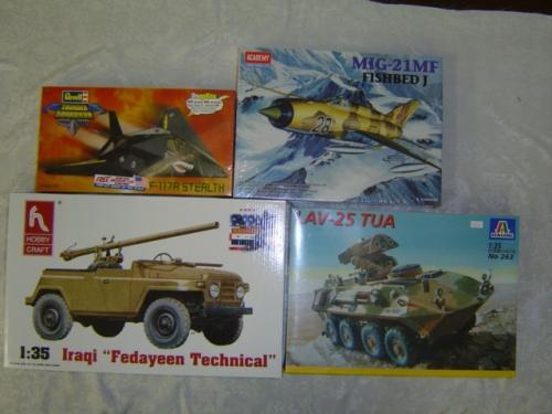 Revell 85-1182 1/72 Snap F117A Stalth, Academy 2171 148 Mig 21-F Fishbed J,Italeri 263 1/35 LAU-25 Tup, Hobbycraft HC6006 1/35 Fedayeen Technical