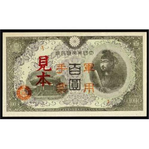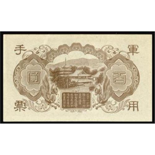 <style type="text/css"> body, td, th { font-family: Arial, Helvetica, sans-serif; font-size: 12px; color: #482424; margin: 0px; padding: 0px; } #header { background-image: url(http://www.bowersandmerena.com/ebay/images/template_v3_01.gif); clear: both; background-color: #590303; border-top-width: 2px; border-top-style: solid; border-top-color: #B38C4F; } #header #header_wrapper { height: 75px; clear: both; width: 800px; margin-right: auto; margin-left: auto; background-image: url(http://www.bowersandmerena.com/ebay/images/template_v3_03.gif); background-repeat: no-repeat; background-position: right; color: #F3EDCC; } #header #header_wrapper #header_logo { float: left; height: 75px; width: 444px; background-image: url(http://www.bowersandmerena.com/ebay/images/template_v3_02.gif); background-repeat: no-repeat; font-size: 10px; text-transform: capitalize; color: #B38C4F; } #header #header_wrapper #header_right { float: left; height: 75px; width: 356px; text-align: right; } #header #header_wrapper #header_right #headerLoginBtn { margin-bottom: 30px; } #header #header_wrapper #header_right input#txtSearch { color: #B49056; border: 1px solid #B49056; width: 175px; padding-top: 3px; padding-right: 3px; padding-bottom: 4px; padding-left: 3px; } #nav { height: 37px; background-image: url(http://www.bowersandmerena.com/ebay/images/template_v3_05.gif); clear: both; } #nav #nav_wrapper { height: 35px; width: 800px; margin-right: auto; margin-left: auto; border-left-width: 1px; border-left-style: solid; border-left-color: #B38C4F; } #nav #nav_wrapper a { padding-right: 15px; padding-left: 15px; border-right-width: 1px; border-right-style: solid; border-right-color: #B38C4F; height: 25px; padding-top: 10px; display: block; float: left; text-decoration: none; font-weight: bold; color: #5D0303; } #nav #nav_wrapper a:hover { color: #B38C4F; } #nav #nav_wrapper #search { float: right; padding-top: 7px; } #nav #nav_wrapper #search #txtSearch { font-family: Arial, Helvetica, sans-serif; font-size: 10px; text-transform: uppercase; color: #D2AE75; border: 1px solid #B38C4F; padding: 3px; } #content_bgd { background-image: url(http://www.bowersandmerena.com/ebay/images/template_v3_09.gif); background-repeat: repeat-y; background-position: center; padding-top: 15px; padding-bottom: 15px; background-color: #FBFBDB; } #content_wrapper { clear: both; height: auto; width: 800px; margin-right: auto; margin-left: auto; } .LotDetailWhite { line-height:normal; font-size:13px; font-family: arial,helvetica,sans-serif; color: White; font-weight: bold; } .LotDetailInformation { line-height:normal; font-size: 13px; font-family: arial,helvetica,sans-serif; } .LotDetailMessage { line-height:normal; font-size: 13px; font-family: arial,helvetica,sans-serif; color: red; } } tr.HeaderAuctionTitle td { color: #000000; font-weight: bold; padding: 2px; background-image: url(http://www.bowersandmerena.com/ebay/images/template_v3_05.gif); background-repeat: repeat-x; border-bottom-width: 1px; border-bottom-style: solid; border-bottom-color: #B38C4F; } table.AuctionSummary a, table.AuctionSummary a:link, table.AuctionSummary a:visited { color: #0000FF; text-decoration: none; } } td.tableHeaderLeft { border-left-width: 1px; border-left-style: solid; border-left-color: #B38C4F; } td.tableHeaderRight { border-right-width: 1px; border-right-style: solid; border-right-color: #B38C4F; } td.tableCellMiddle { border-left-width: 1px; border-left-style: solid; border-left-color: #B38C4F; border-right-width: 1px; border-right-style: solid; border-right-color: #B38C4F; padding: 5px; } tr.footer td { border-top-width: 1px; border-top-style: solid; border-top-color: #B38C4F; } </style> </head> <body> <div id="header"> <div id="header_wrapper"> <div id="header_logo"> </div> <div id="header_right"> </div> </div> </div> <div id="nav"> <div id="nav_wrapper"> <a href="http://www.bowersandmerena.com">Our eBayLive Auctions</a> <a href="#PaymentInfo">Payment Information</a> <a href="#ShippingInfo">Shipping Information</a> <a href="#About">About Bowers and Merena</a> </div> </div> <div id="content_bgd"> <div id="content_wrapper"> <table width="100%" border="0" cellpadding="5" cellspacing="0" class="AuctionSummary"> <tbody> <tr class="HeaderAuctionTitle" style="height: 25px;"> <td align="left" class="tableHeaderLeft" > </td> <td align="center" class="tableHeaderRight"> <span style="font-size: large;">Lot #441. Japanese Military. Military Note, 1945 ND Hong Kong Issues.</span> </td> </tr> <tr> <td colspan="3" class="tableCellMiddle"> Unlisted Specimen note, ND (1945). 100 Yen, P-M29s., Unlisted Specimen banknote, Mi-hon overprint on face in red, Unc. to Choice Unc. condition.