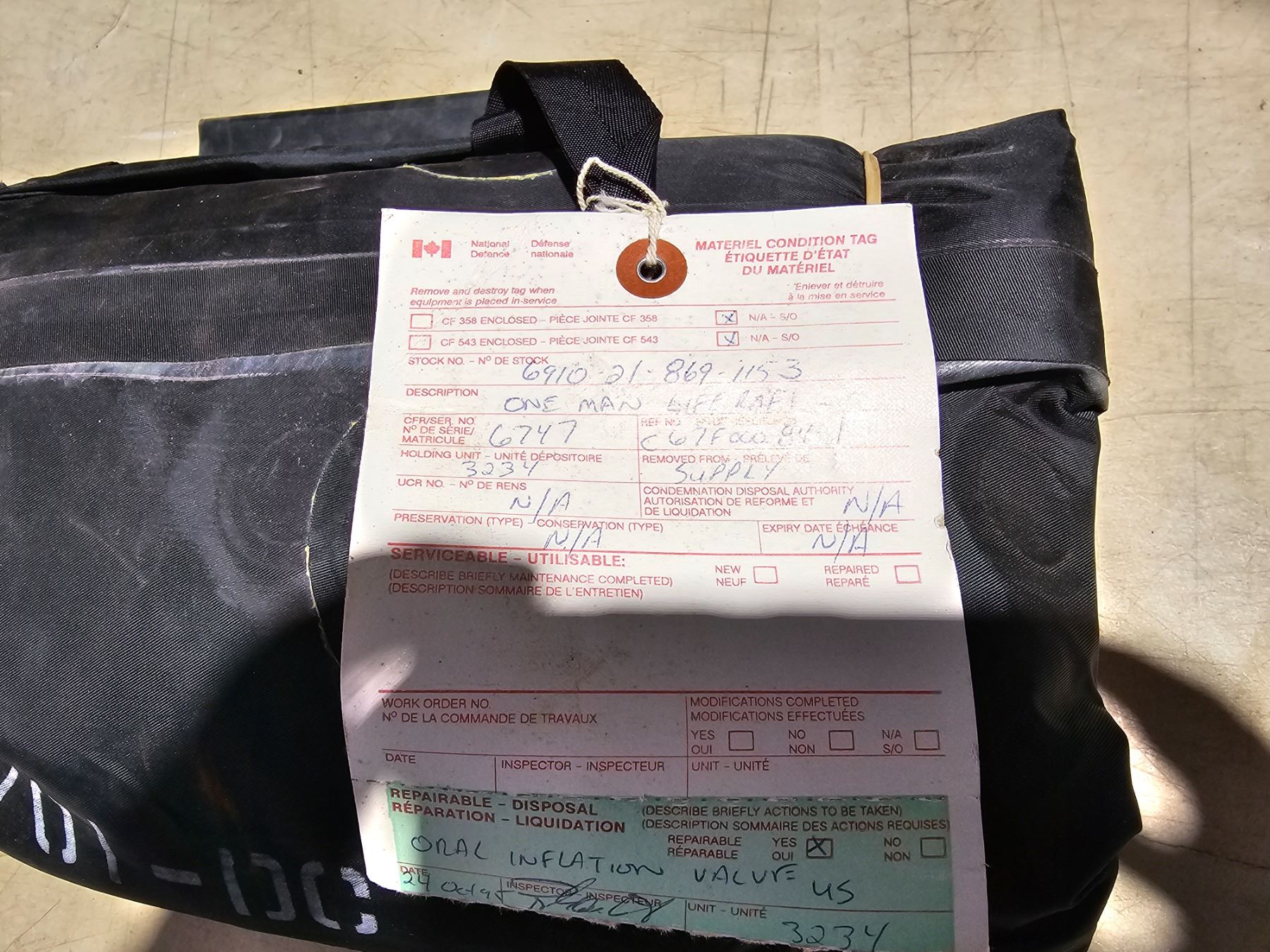 Military One Man Life Raft