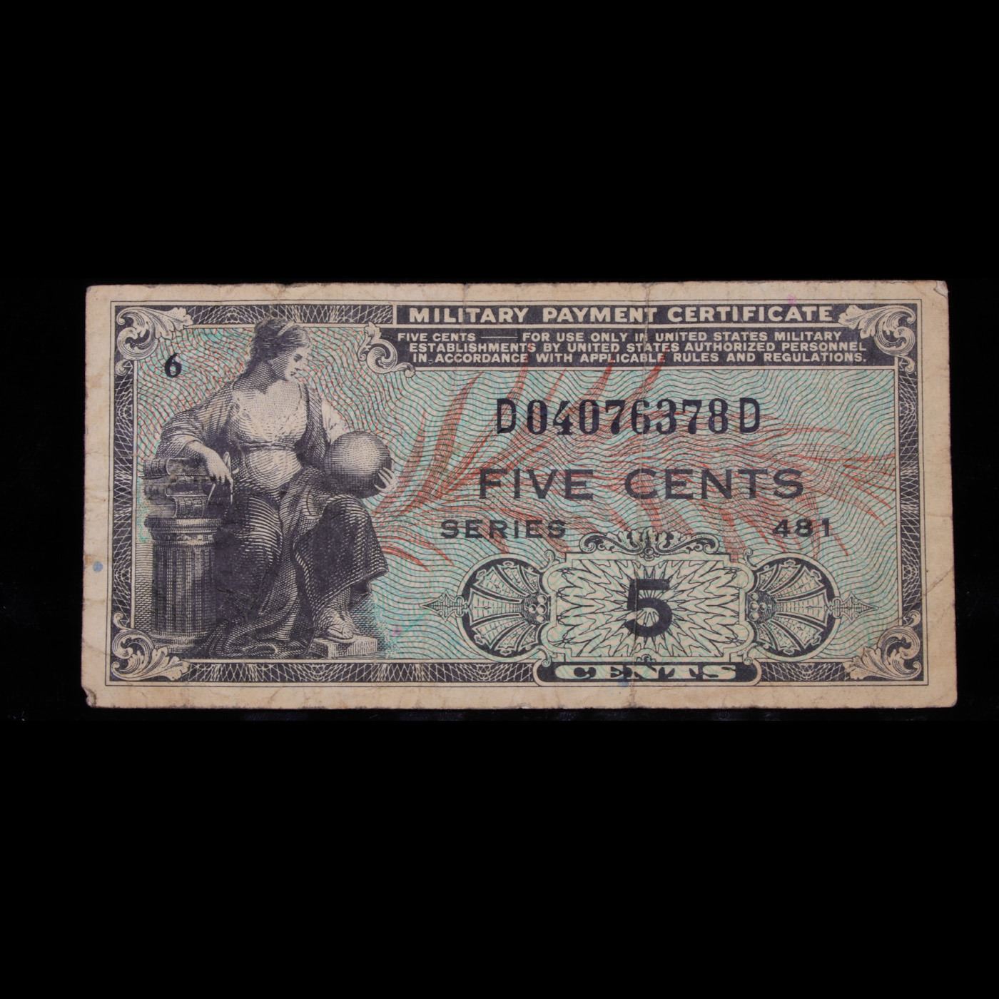 Military Payment Certificate (MPC) Series 481 5c Currency MPC Grades vf++