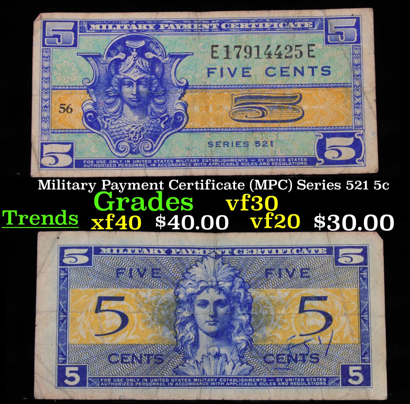Military Payment Certificate (MPC) Series 521 5c Currency MPC Grades vf++