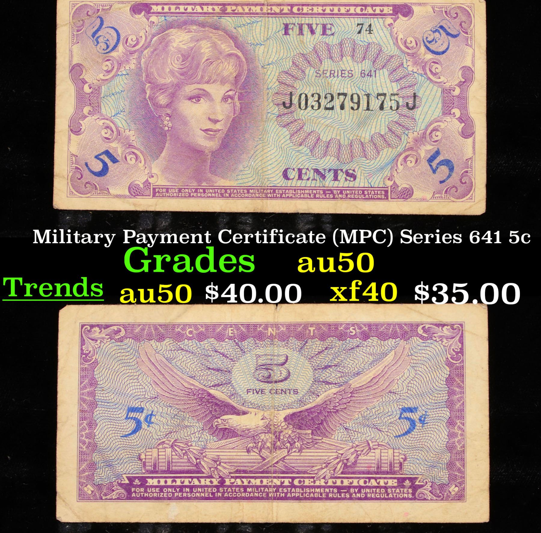Military Payment Certificate (MPC) Series 641 5c Grades AU, Almost Unc