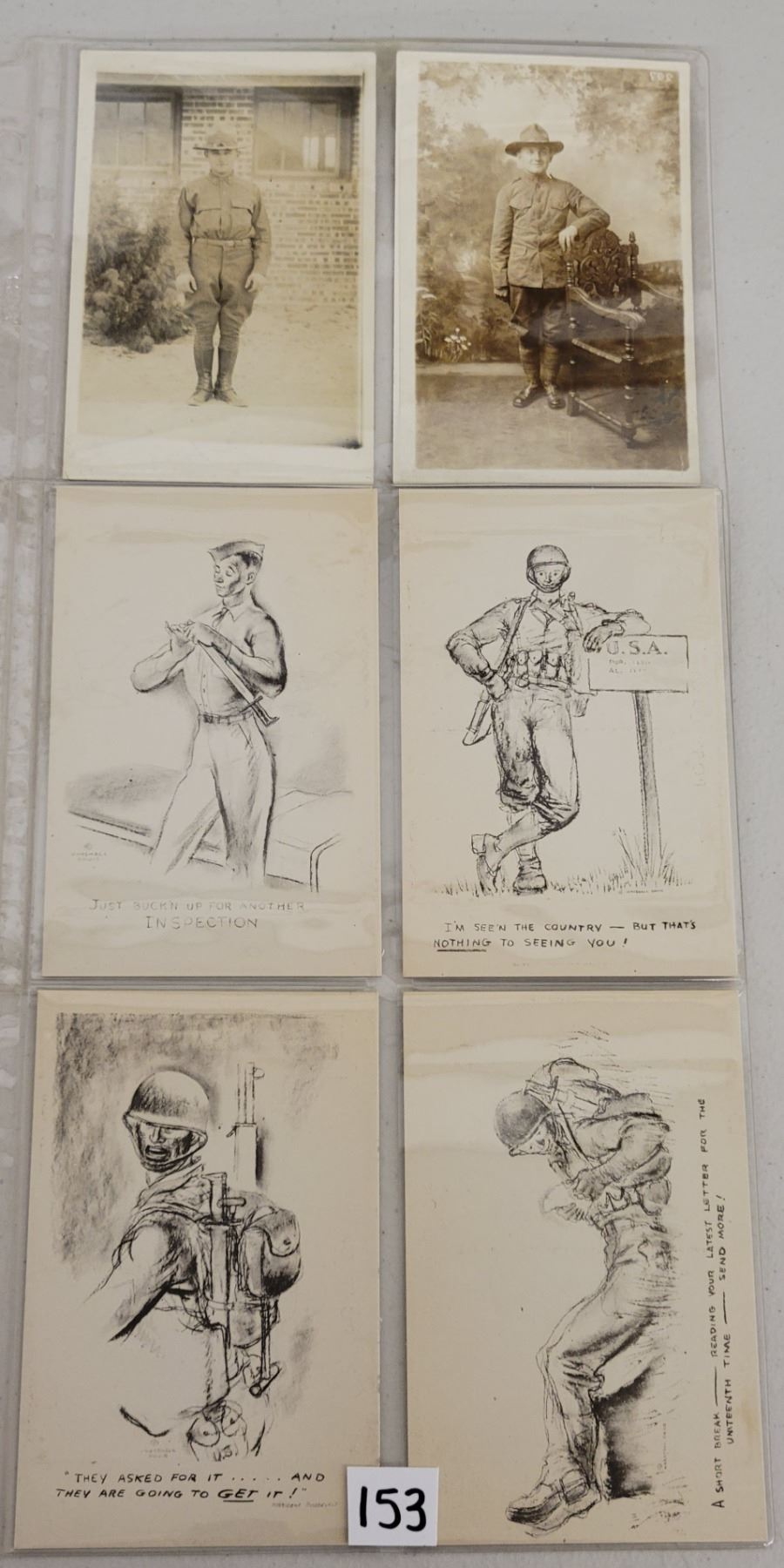 Over 40 military postcards. Early, some real photo.