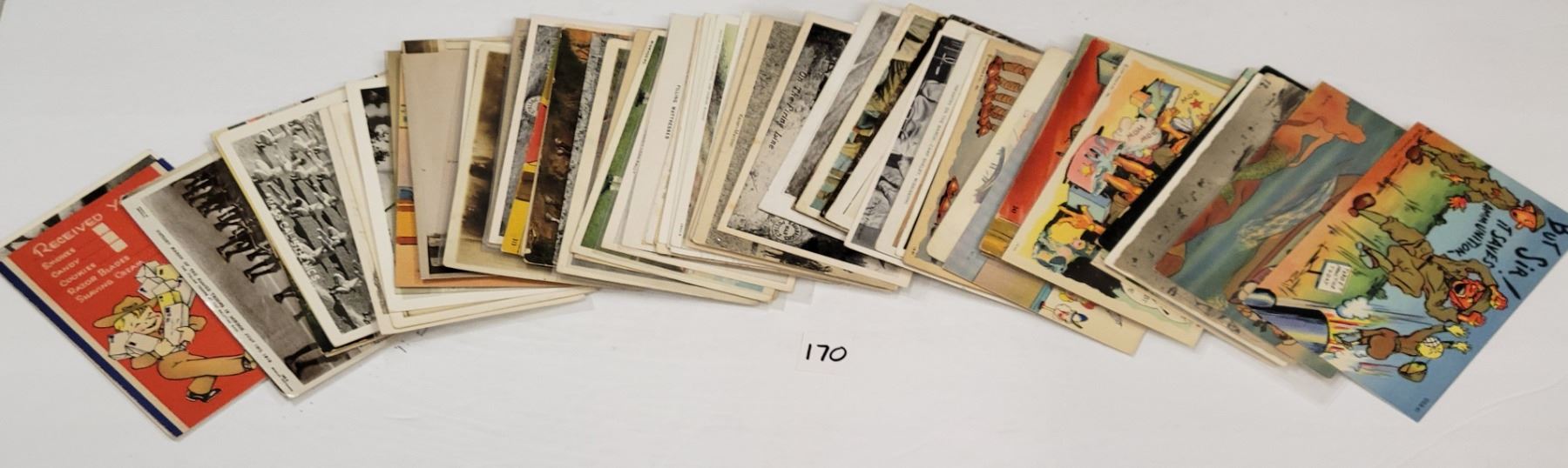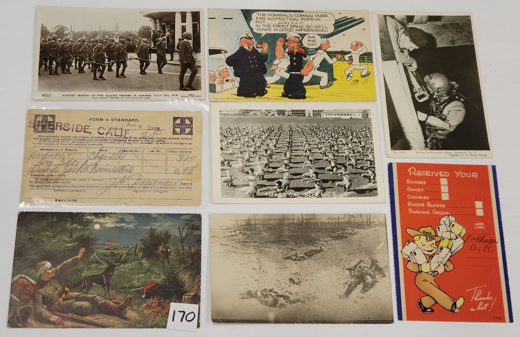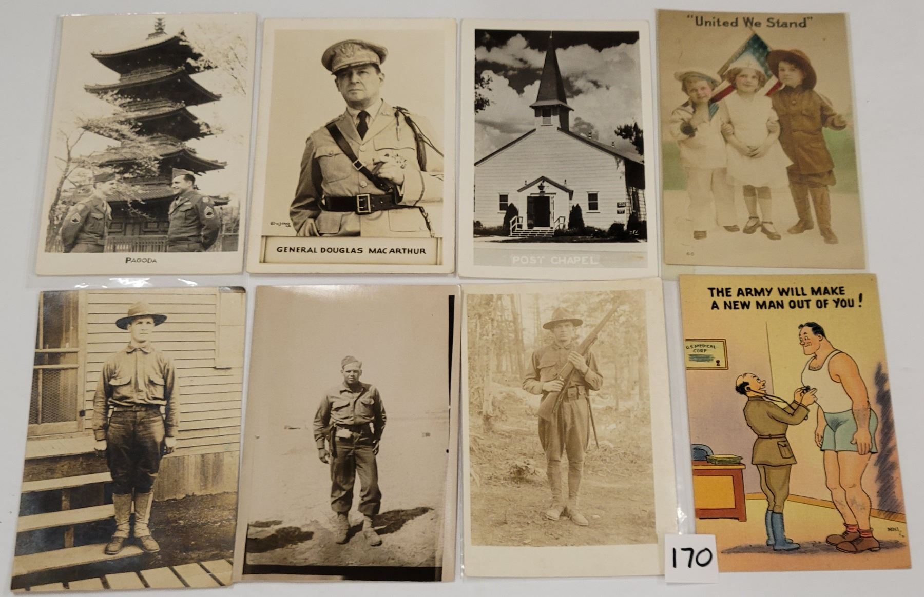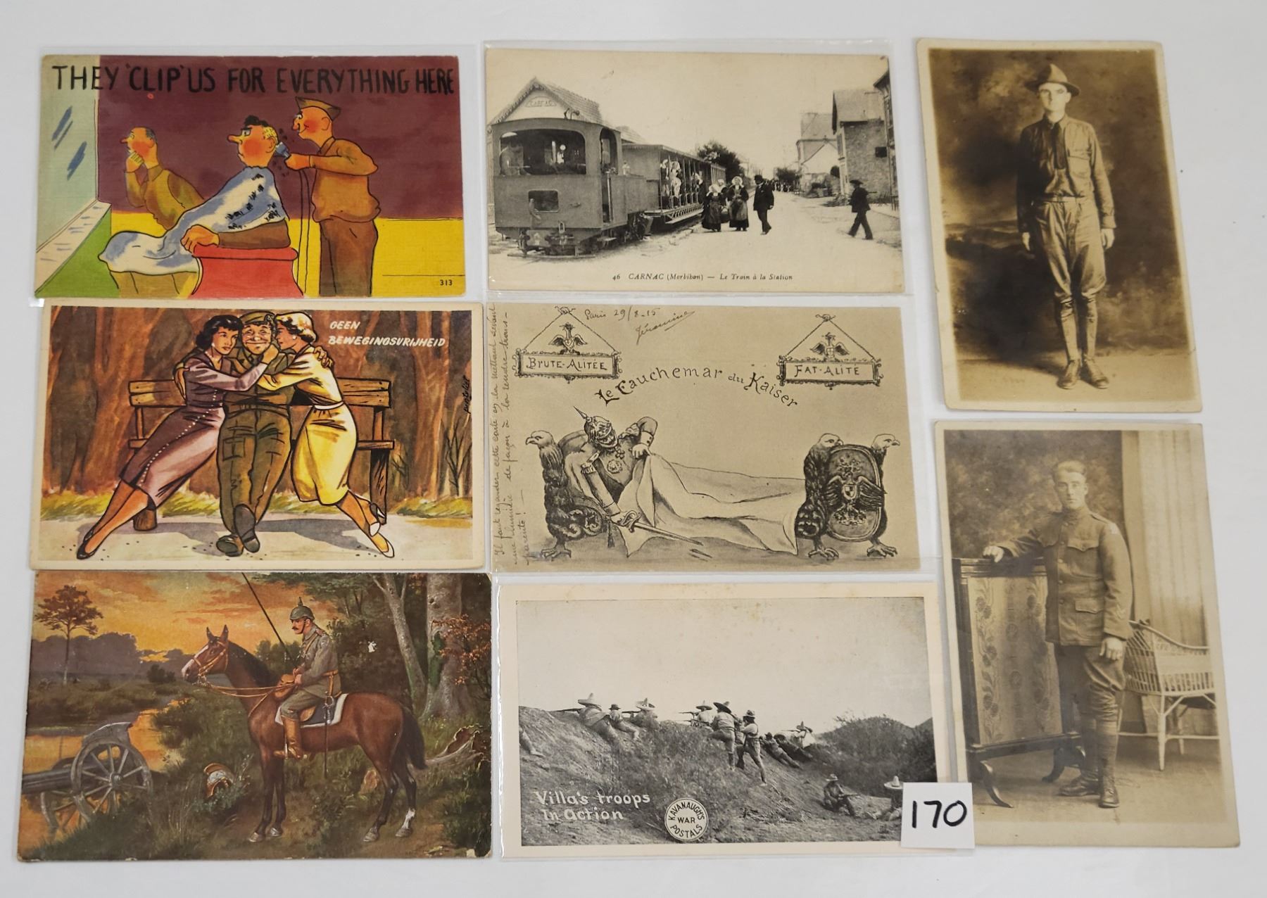 Over 75 military postcards. Early to linen. Several real photo.