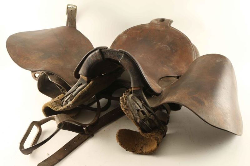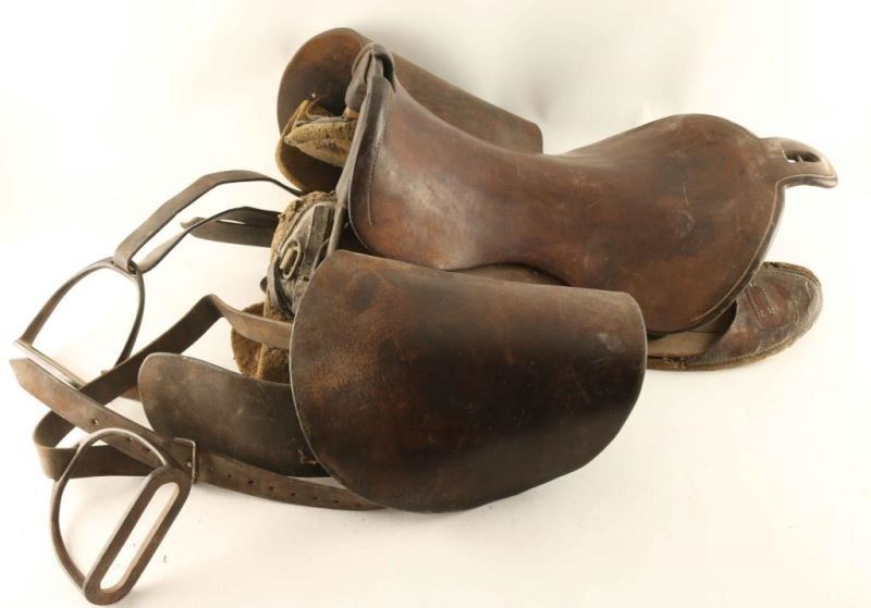 All leather with a smooth seat stamped 'C3CD', no other markings. Shows age. From The John F Sukey Collection