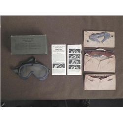 WWII M-1944 POLAROID GOGGLES-WITH ORIG BOX/INSTRUCTIONS & SAND GOGGLES WWII STOCK #74-L-65-220---EXC CONDITION-NICE ORIGINALS-5 EXTRA SETS OF INSE