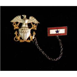 WWII STERLING BLUE STAR BROOCH-MARINE/NAVY W/CHAIN MARKED STERLING