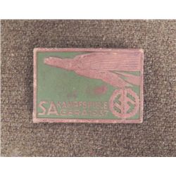RARE 1937 NAZI STORMTROOPER SPORTS GAMES BADGE-ORIG-WELL MARKED RARE BADGE--FRONT HAS A FLYING EAGLE THAT IS STYLEIZED CLUTCHING A WREATH AND SWASTIKA