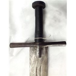 A SUDANESE KASKARA SWORD War of 1885, 33 5/8in broad blade with two fullers. Hide covered grip. Type associated with the Mad Mahti and the S...