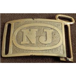 NEW JERSEY MILITIA SPANISH AMERICAN WAR BELT BUCKLE.  THE BRASS BUCKLE HAS "NJ" IN AN OVAL IN THE CENTER.  THERE IS A SEPARATE B...