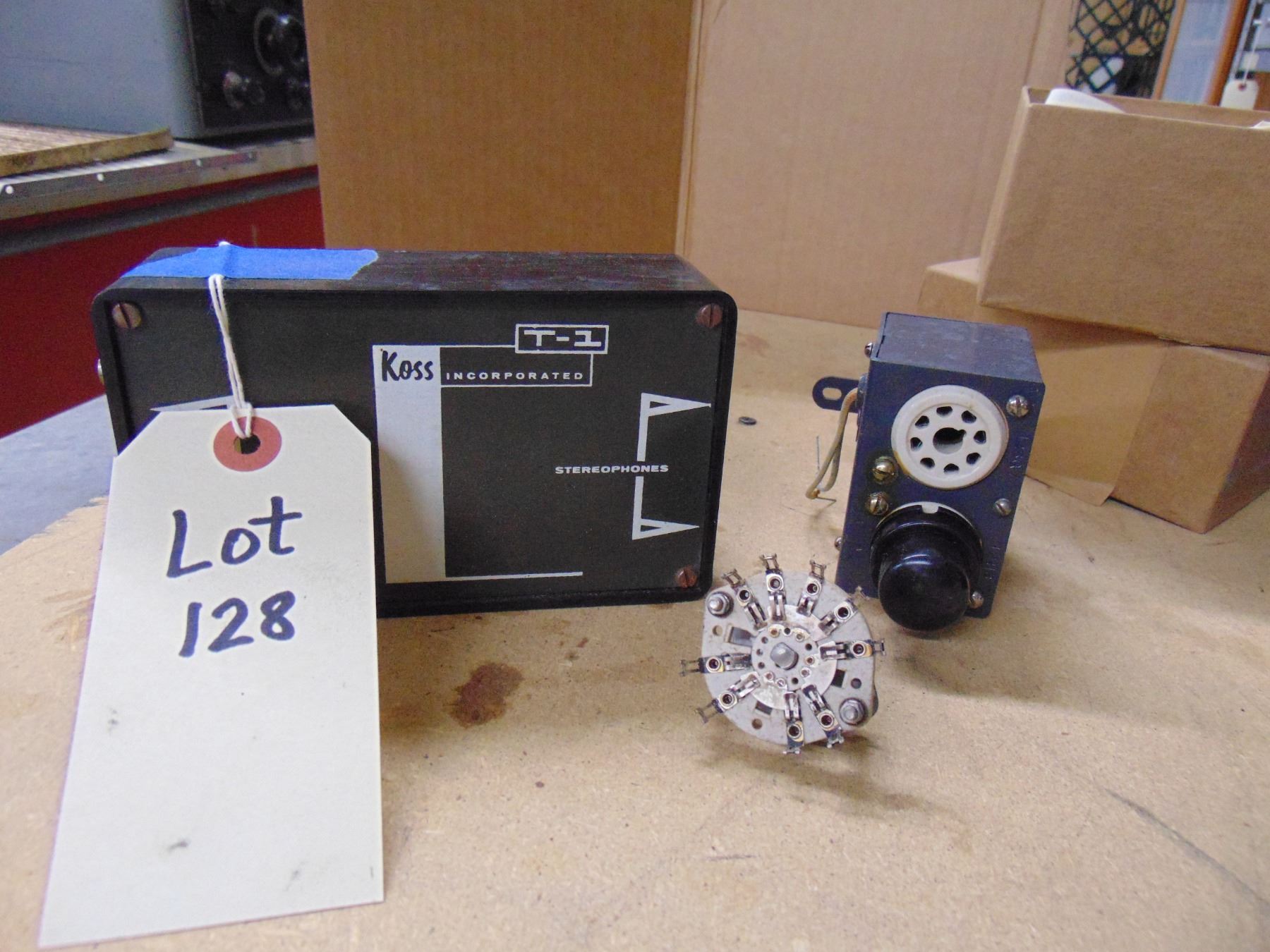 Koss stereo headphone connector and NOS noise limiter adapter unit model 50159 for WWII Navy; model TCS receivers