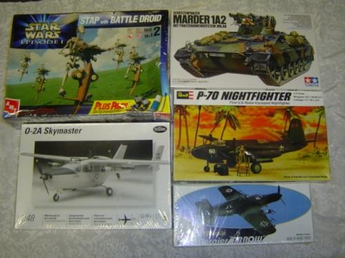 AMT 30139 Star wars Espisode 1 stays/w/ battle droid, Testors 514 Cessna o-2A Skymaster 1/48, REvell H232 P-70 Night fighter 1/72, Tamiya 35162 Marder 1A-2 1/35, Revell H96 Dornier Arrow 1/72