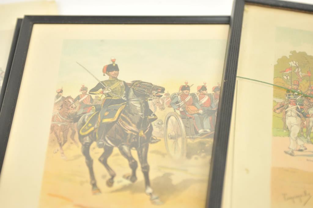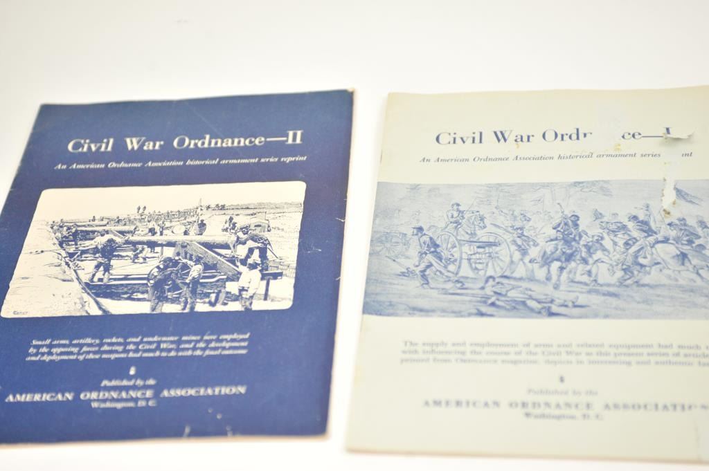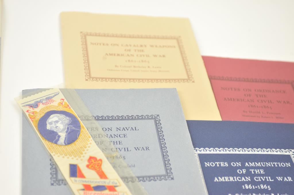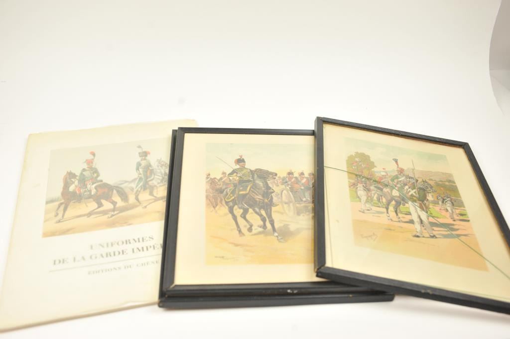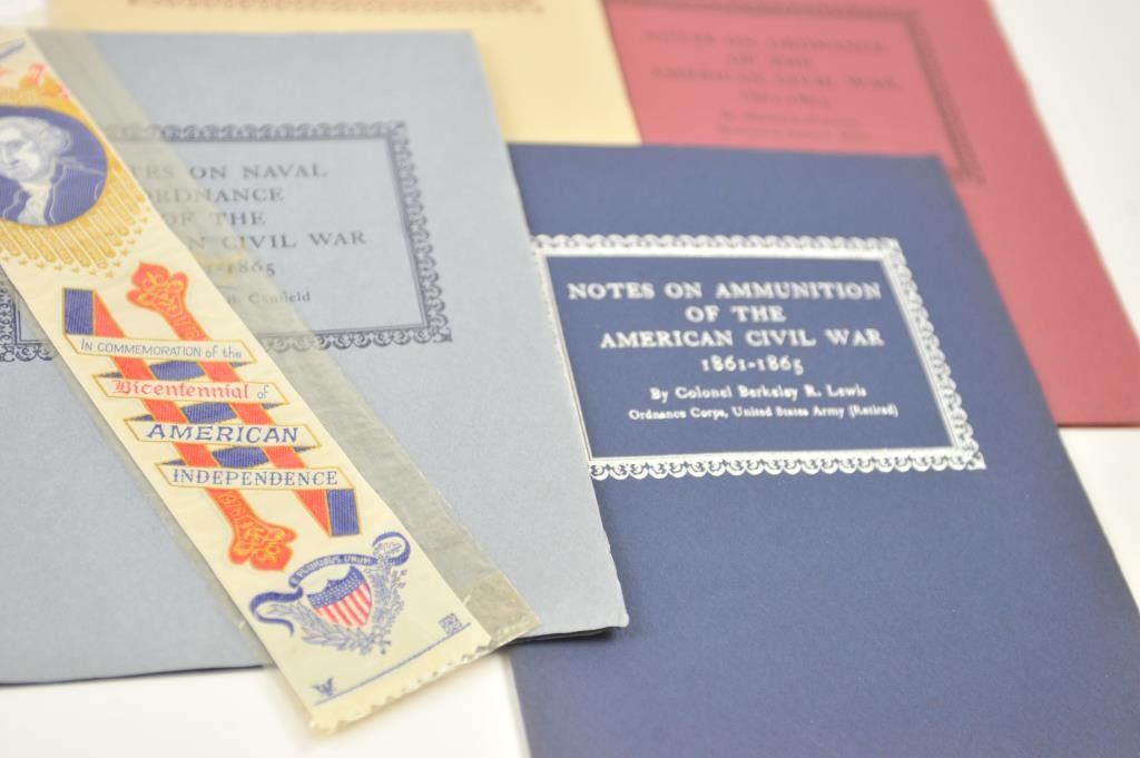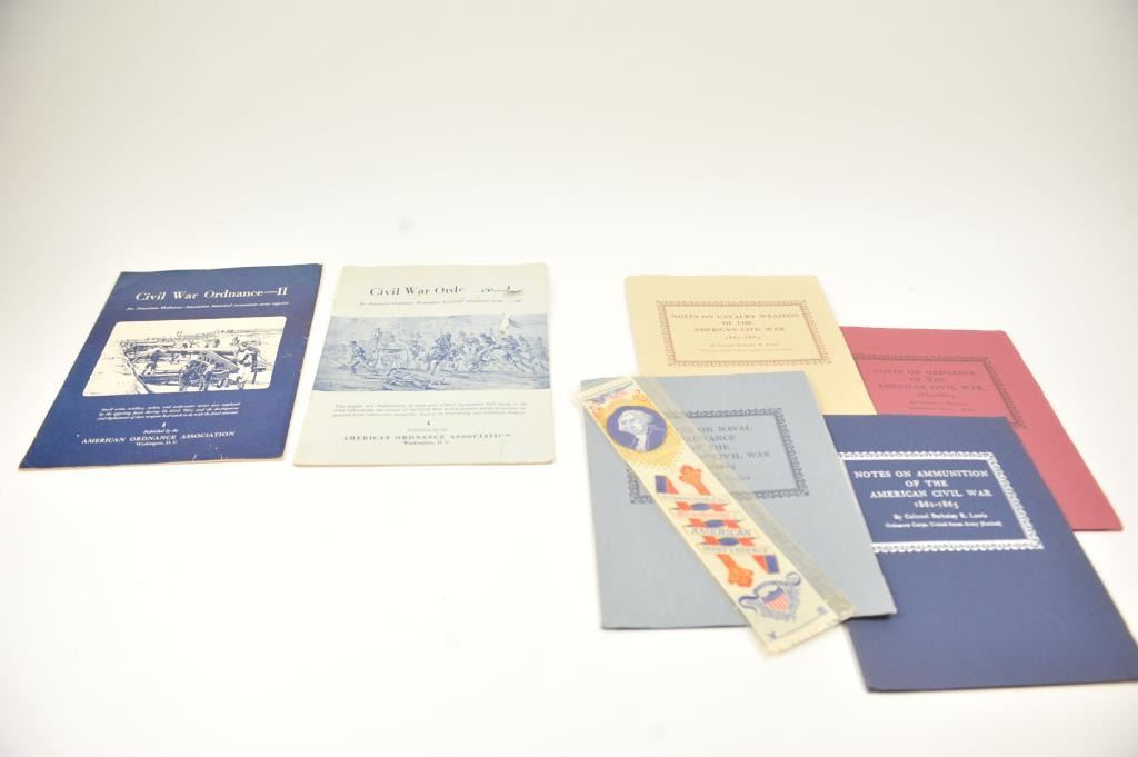 Military print lot with six pamphlets on Civil War Ordnance, framed works showing French Imperial Guards and a set of twelve color prints titled, “Our Navy in Action” distributed by the U.S. Navy picturinghistorical naval engagements through the ages. A nice lot of military prints. $125-$250.