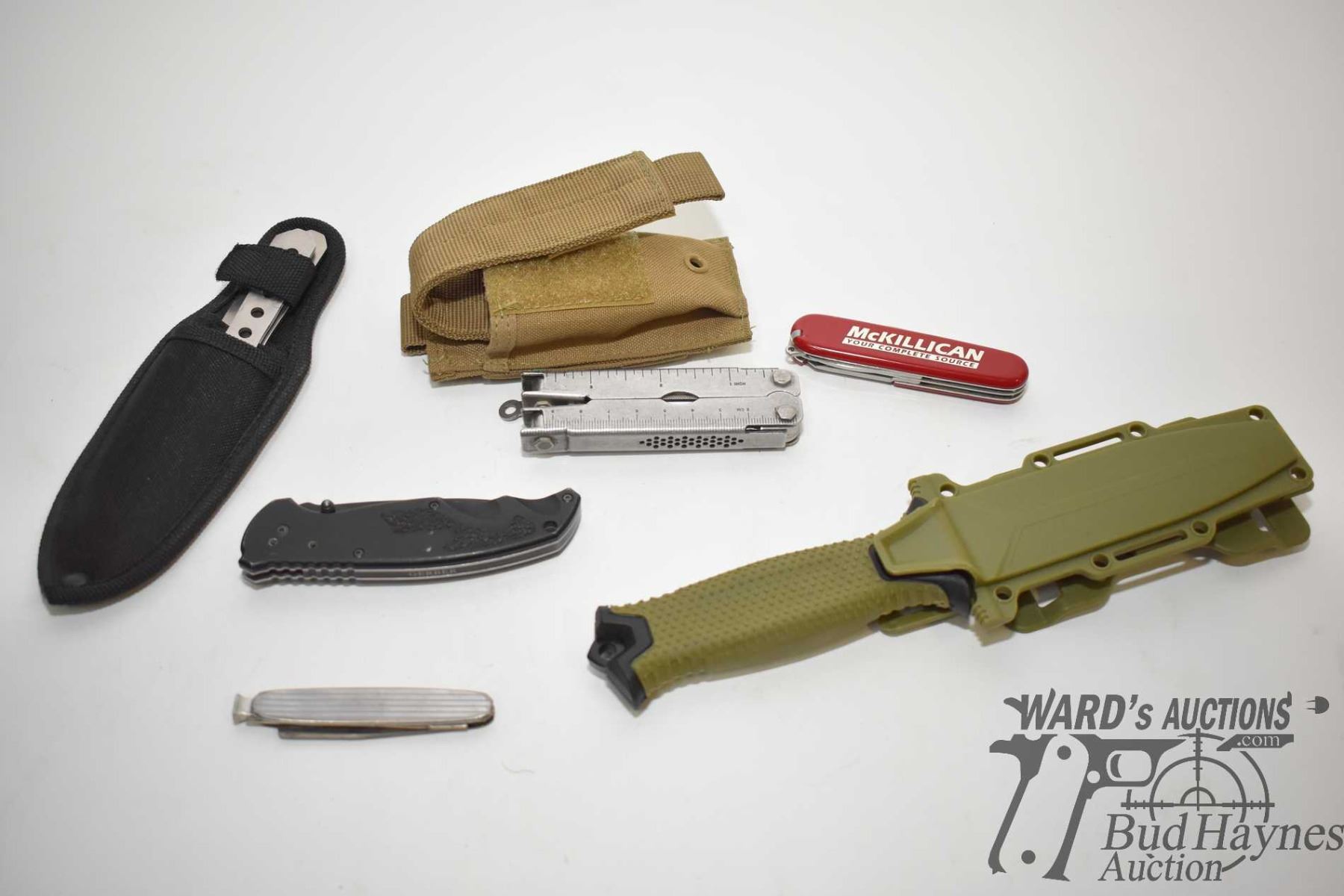 Military style hunting knife, set of Hero throwing Military style hunting knife, set of Hero throwing knives, Sog multi tool and 3 folding knives