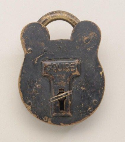 Military style lock and key by Jas. Morgan & Sons, Justin Square; brass with black finish, marked Squire and Old English. Est.: $100-$200
