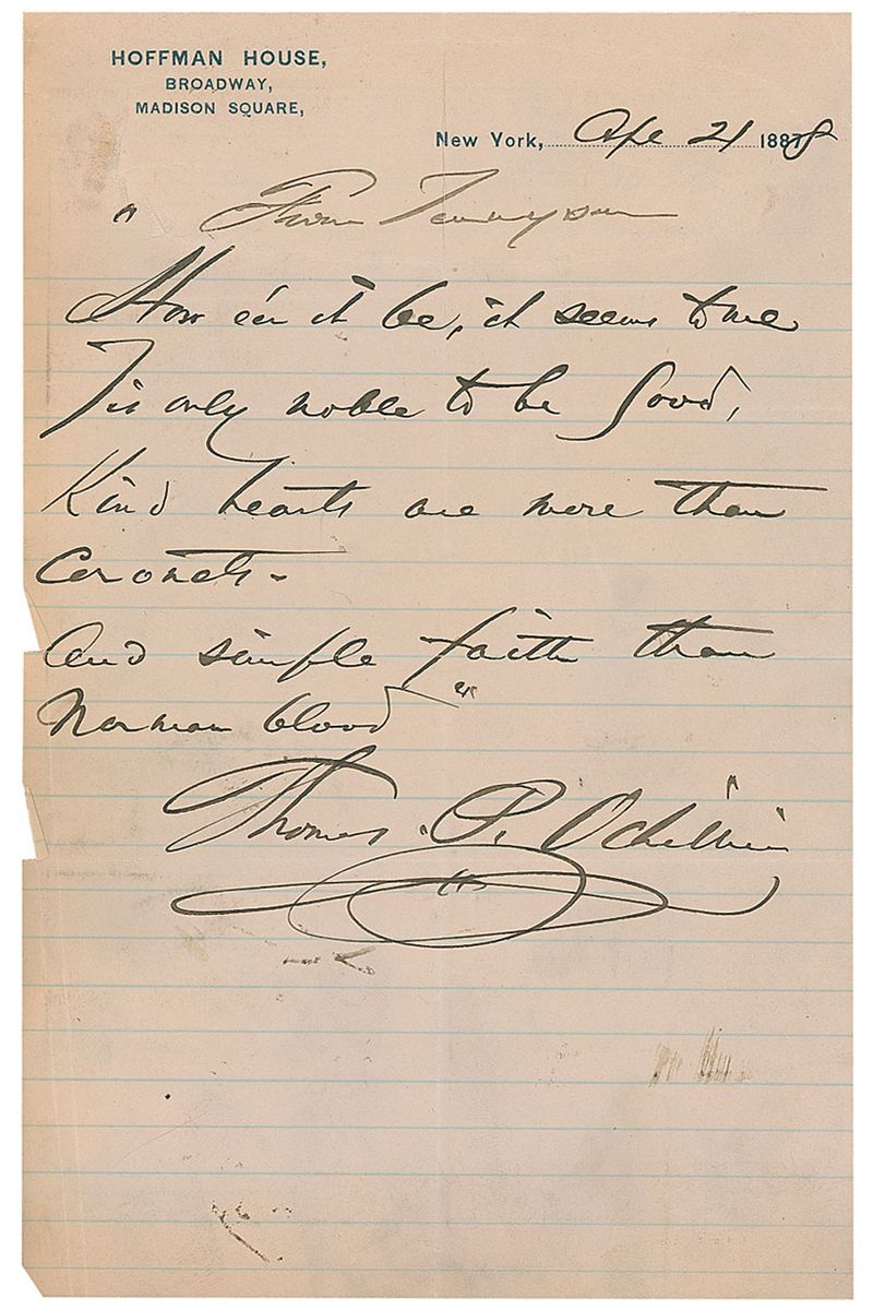 During live Auctions, internet bids can be placed in real time through the following services: www.RRAuction.com, www.liveauctioneers.com, www.artfact.com and www.icollector.com. On some occasions beyond the control of RR Auction, the bid software or the Internet itself may not physically keep up with the pace of the auction. In order to help avoid disappointment, RR Auction recommends placing a realistic absentee bid now. Since Artfact and iCollector (hereinfafter referred to as “Third Party sites”) bids are not shown to RR Auction until RR Auction opens the lot on the floor, RR Auction treats those bids the same as floor or telephone bids. In most cases, however, the floor and/or telephone responds before the Third Party sites bid is presented, due to Live Internet bid software or Internet lag time, so for consistency it is RR Auction’ policy that floor bids and telephone bids are always considered first over Third Party sites bids with floor bids being considered before telephone bids. Also please note that all RR Auction lots purchased through the Third Party sites carry an additional Buyer’s Premium. RR Auction strongly urges the bidder to resolve any questions about these policies or their implementation PRIOR TO BIDDING.