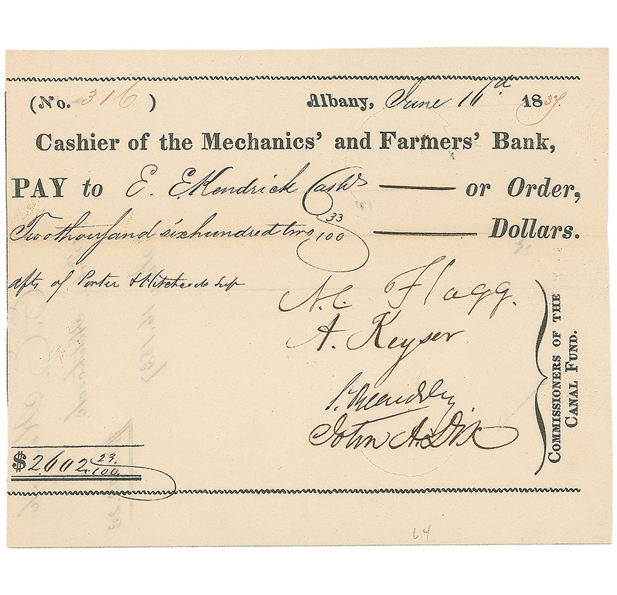 Three checks dated between 1834 and 1996, each signed by a prominent American military figure, including: John A. Dix, William M. Folger, and Eugene B. Fluckey. In overall fine condition, with expected bank stamps and cancellation holes.